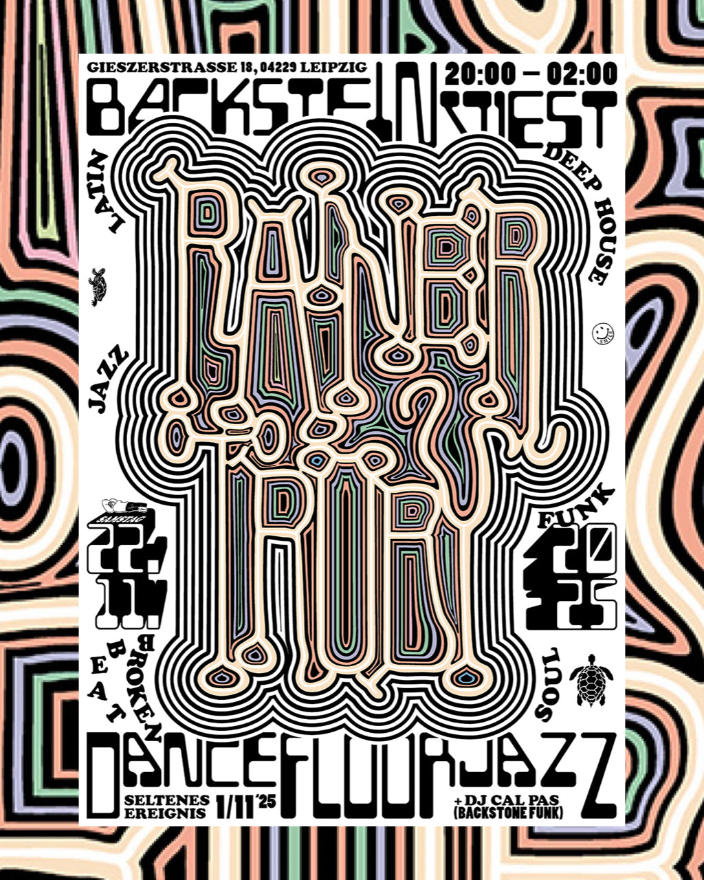 Liebe Freunde, es ist uns eine Riesenfreude, für Samstag den 22.11.’25 RAINER TRÜBY, als international geschätzten Musiker, Plattensammler und DJ gewonnen zu haben. Damit möchten wir eine Serie starten, die sich um den Style “DANCEFLOOR JAZZ” dreht. JAZZ gilt ohnehin als Inspiration für nahezu alle Styles. Im Gegensatz zu nur gesampelten und inspirierten Tunes, verschmelzen Masterpieces mit neuen Produktionen, von JAZZ, LATIN, SOUL, BROKEN BEAT bis DEEP HOUSE. Schon zu Anfängen von ACID und GARAGE ist aus dieser Konstellation eine Szene in London gewachsen, die diese Verschmelzungen feiern. Be there or be square! Wieder einmal haben Plakatgestalter GILBERT SPACE SCHNEIDER und DRUCKEN3000 uns mit diesem Plakat geflasht. XXX Danke!!! Wir möchten dies als ein besonderes Ereignis feiern. Da wir als BACKSTEIN WEST uns nicht als Club, sondern als Grundversorger, Warm Up verstehen, sind wir bemüht, die Freude nicht weiter als auf unsere räumlichen Begrenzungen zu halten und unsere Nachbarn zu respektieren. Dafür werden wir entsprechend des außerordentlichen Zeitraums besonders achten. Wir schätzen Euer Verständnis und freuen uns auf einen sehr besonderen Abend.